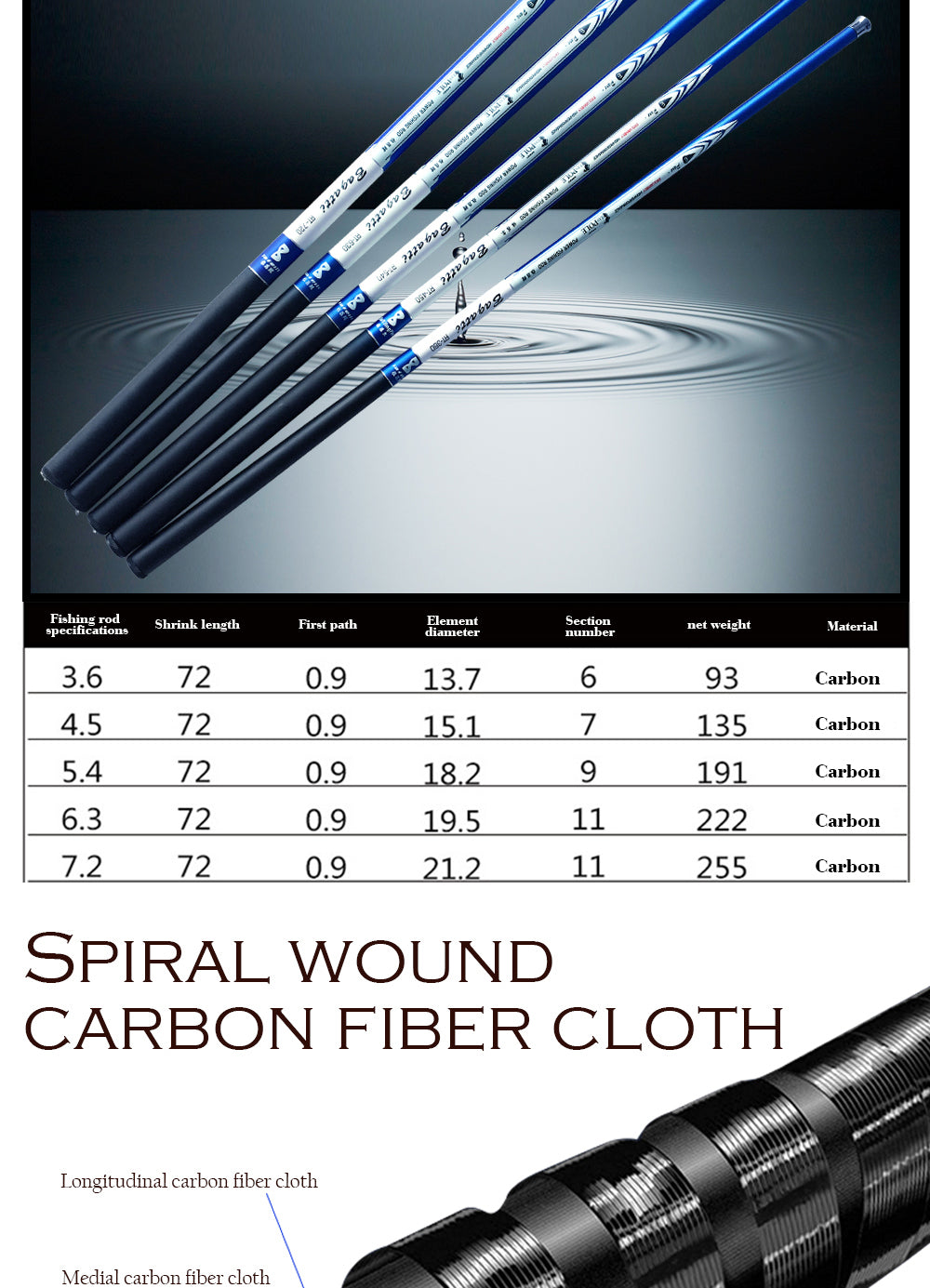 Fishing Rod Carbon Fiber Hand Pole